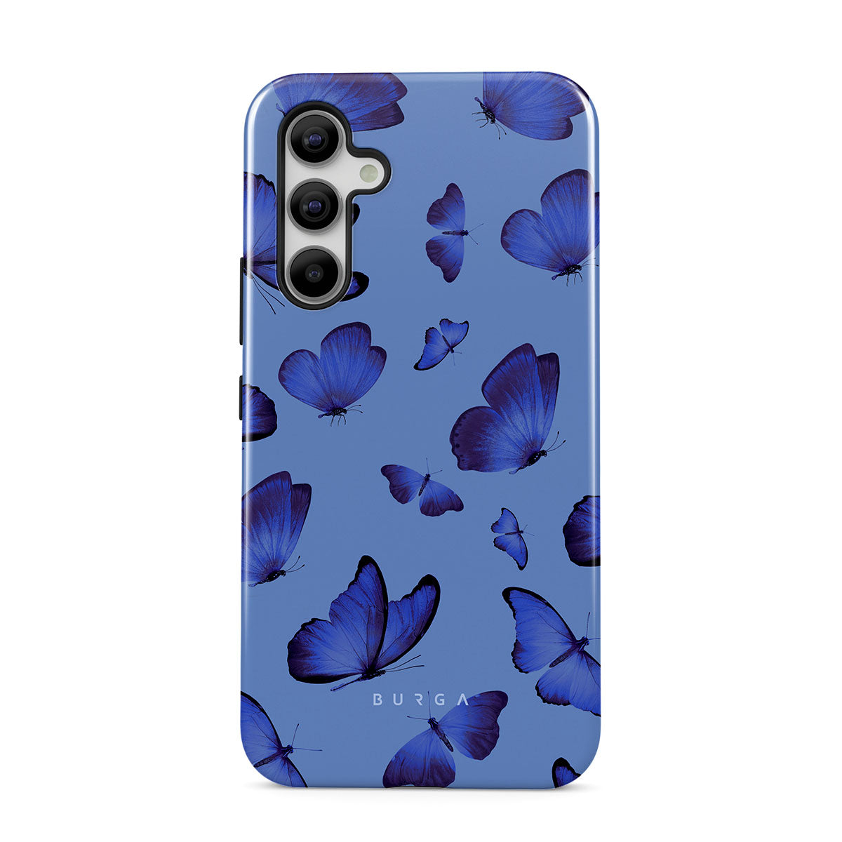 Bright blue butterflies dance across a sky-blue expanse, a visual representation of freedom and transformation. Our Spring Court Samsung Galaxy A54 phone case design symbolizes the soul's eternal dance with change, each flutter a step towards becoming who we are meant to be.