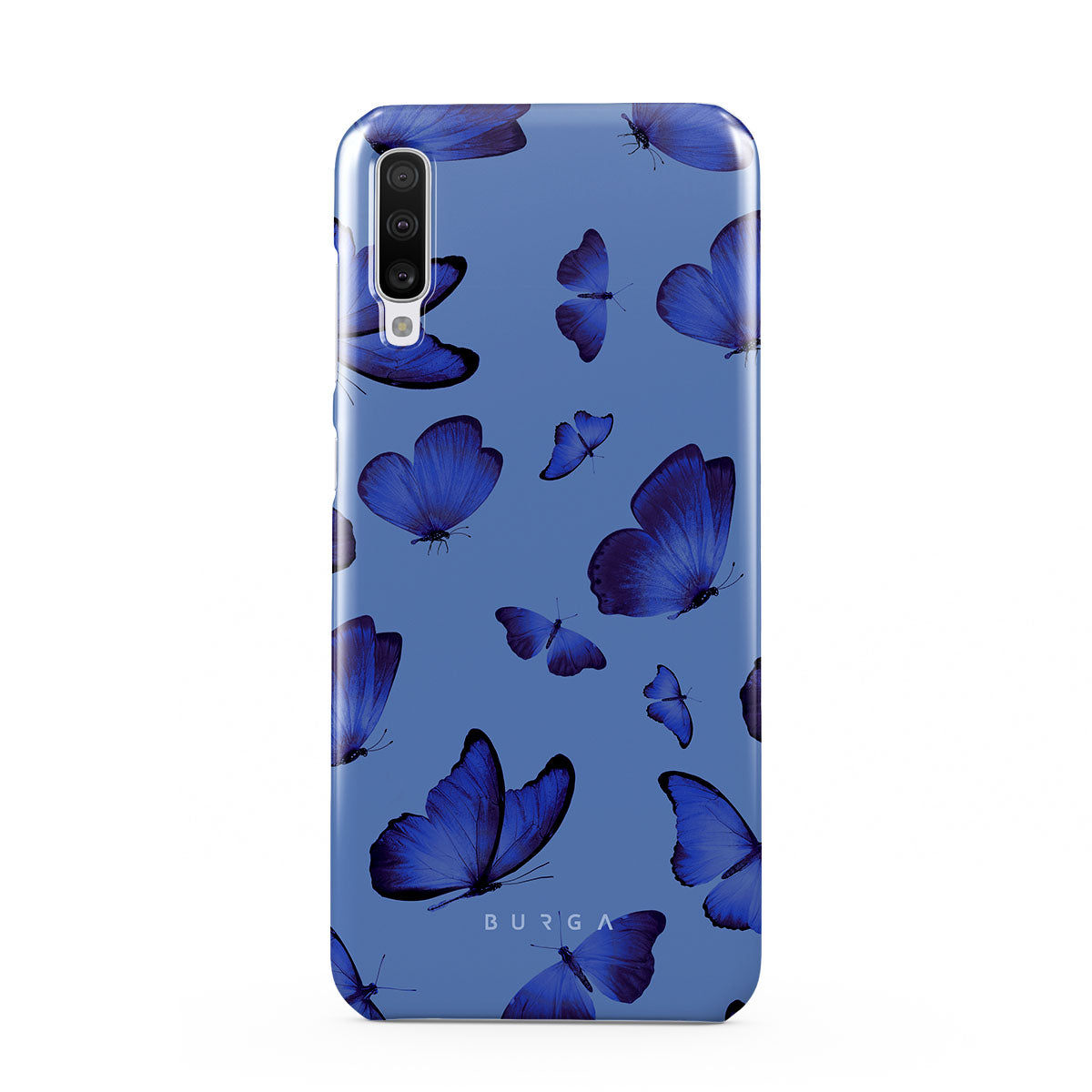 Bright blue butterflies dance across a sky-blue expanse, a visual representation of freedom and transformation. Our Spring Court Samsung Galaxy A70 phone case design symbolizes the soul's eternal dance with change, each flutter a step towards becoming who we are meant to be.