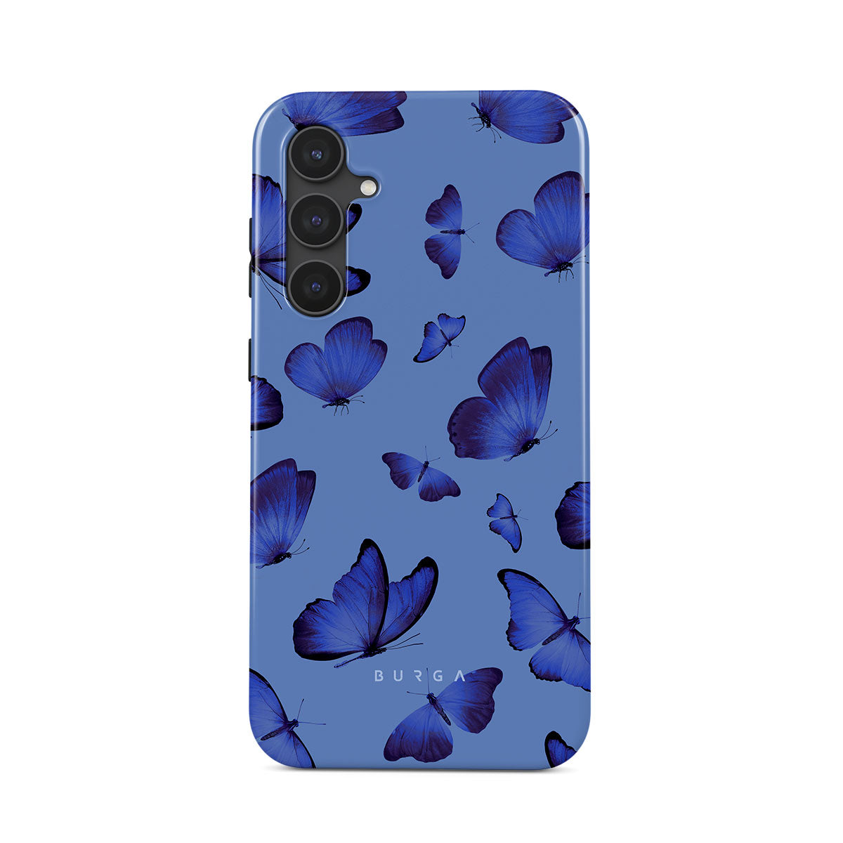 Bright blue butterflies dance across a sky-blue expanse, a visual representation of freedom and transformation. Our Spring Court Samsung Galaxy S23 FE phone case design symbolizes the soul's eternal dance with change, each flutter a step towards becoming who we are meant to be.