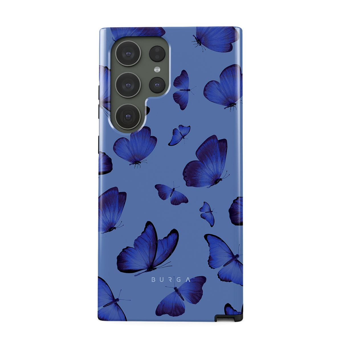 Bright blue butterflies dance across a sky-blue expanse, a visual representation of freedom and transformation. Our Spring Court Samsung Galaxy S23 Ultra phone case design symbolizes the soul's eternal dance with change, each flutter a step towards becoming who we are meant to be.