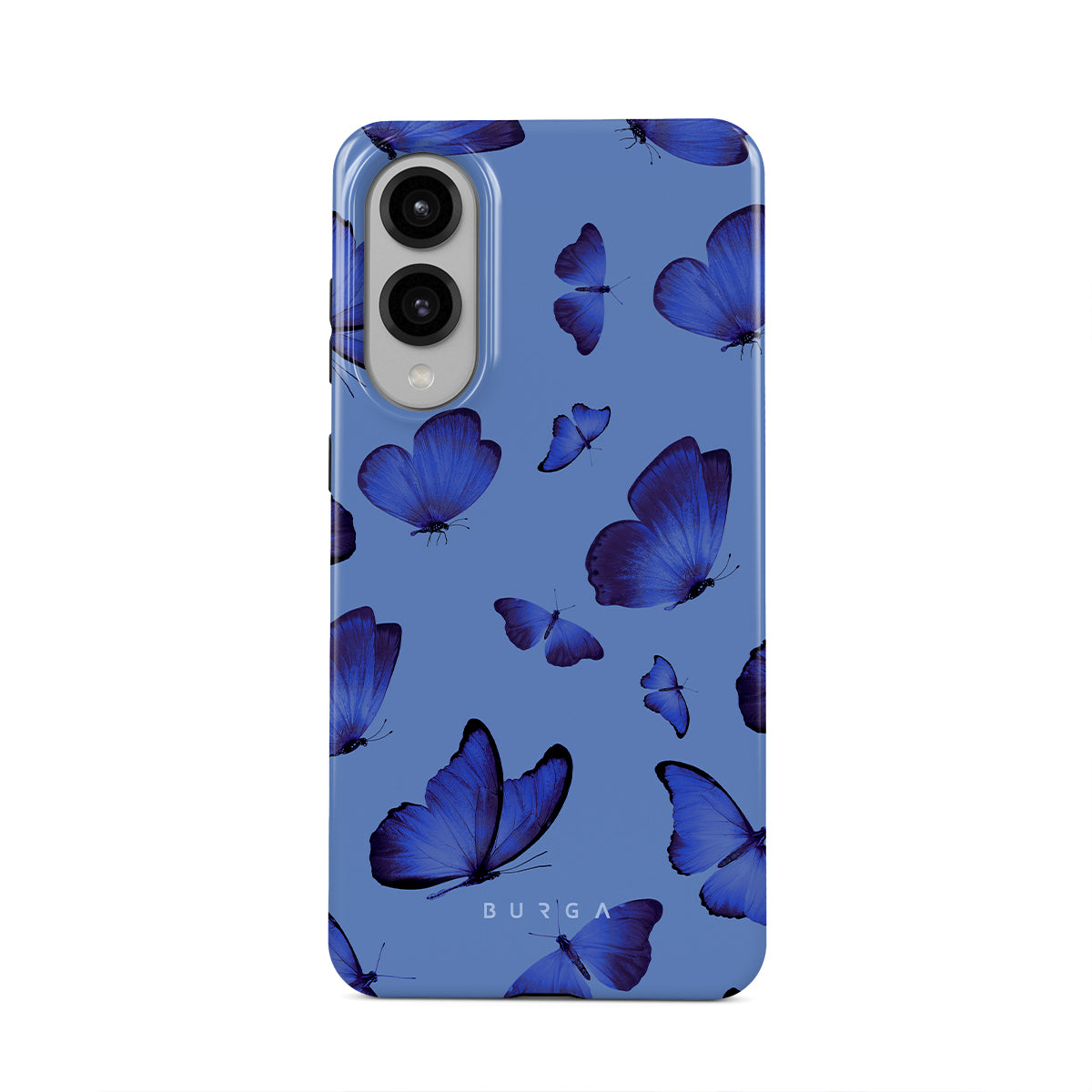 Bright blue butterflies dance across a sky-blue expanse, a visual representation of freedom and transformation. Our Spring Court Samsung Galaxy S25 Edge phone case design symbolizes the soul's eternal dance with change, each flutter a step towards becoming who we are meant to be.