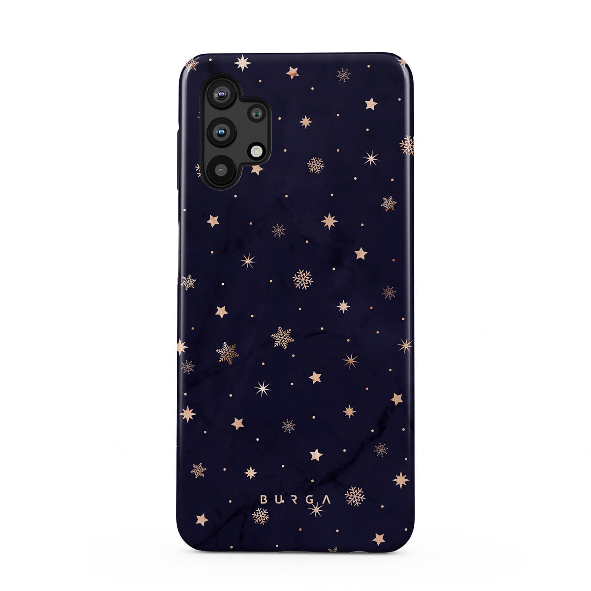 With a dreamy combination of dark blue and golden colors in the pretty star pattern found in our Midnight Kiss Samsung Galaxy A32 5G phone case, you can protect your phone and add a magical feel to it just in one go.