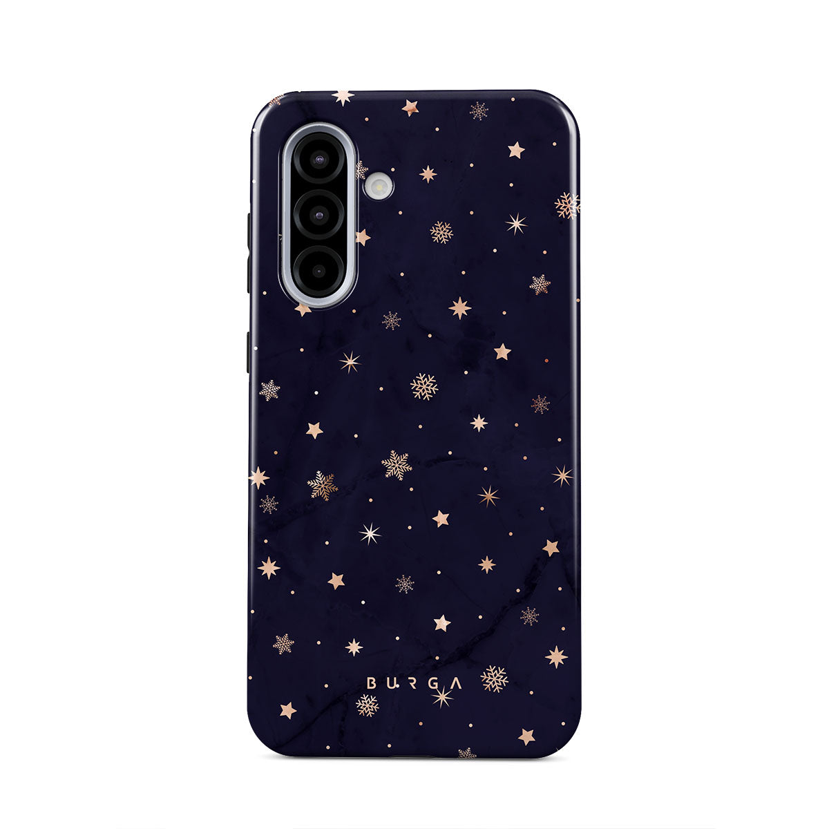 With a dreamy combination of dark blue and golden colors in the pretty star pattern found in our Midnight Kiss Samsung Galaxy A36 5G phone case, you can protect your phone and add a magical feel to it just in one go.