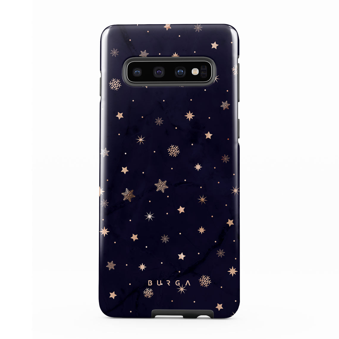 With a dreamy combination of dark blue and golden colors in the pretty star pattern found in our Midnight Kiss Samsung Galaxy S10 phone case, you can protect your phone and add a magical feel to it just in one go.