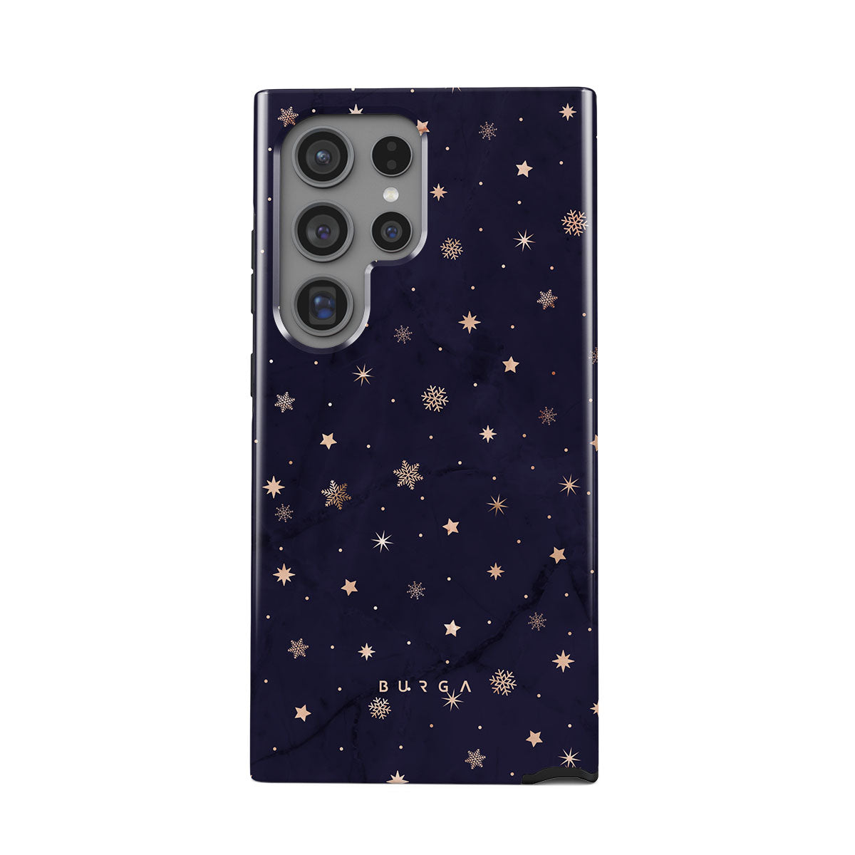 With a dreamy combination of dark blue and golden colors in the pretty star pattern found in our Midnight Kiss Samsung Galaxy S24 Ultra phone case, you can protect your phone and add a magical feel to it just in one go.