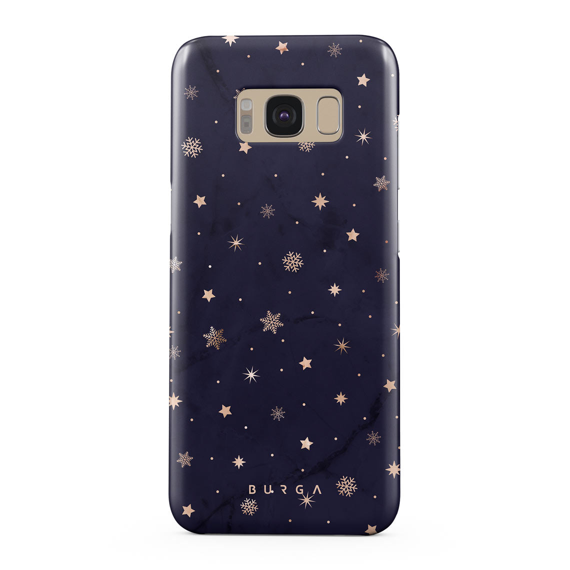 With a dreamy combination of dark blue and golden colors in the pretty star pattern found in our Midnight Kiss Samsung Galaxy S8 phone case, you can protect your phone and add a magical feel to it just in one go.