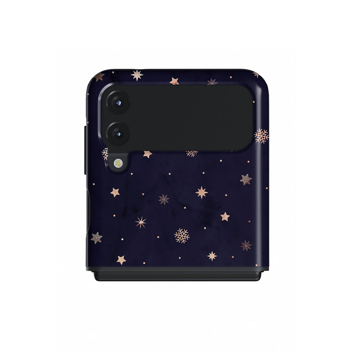 With a dreamy combination of dark blue and golden colors in the pretty star pattern found in our Midnight Kiss Samsung Galaxy Z Flip 3 phone case, you can protect your phone and add a magical feel to it just in one go.
