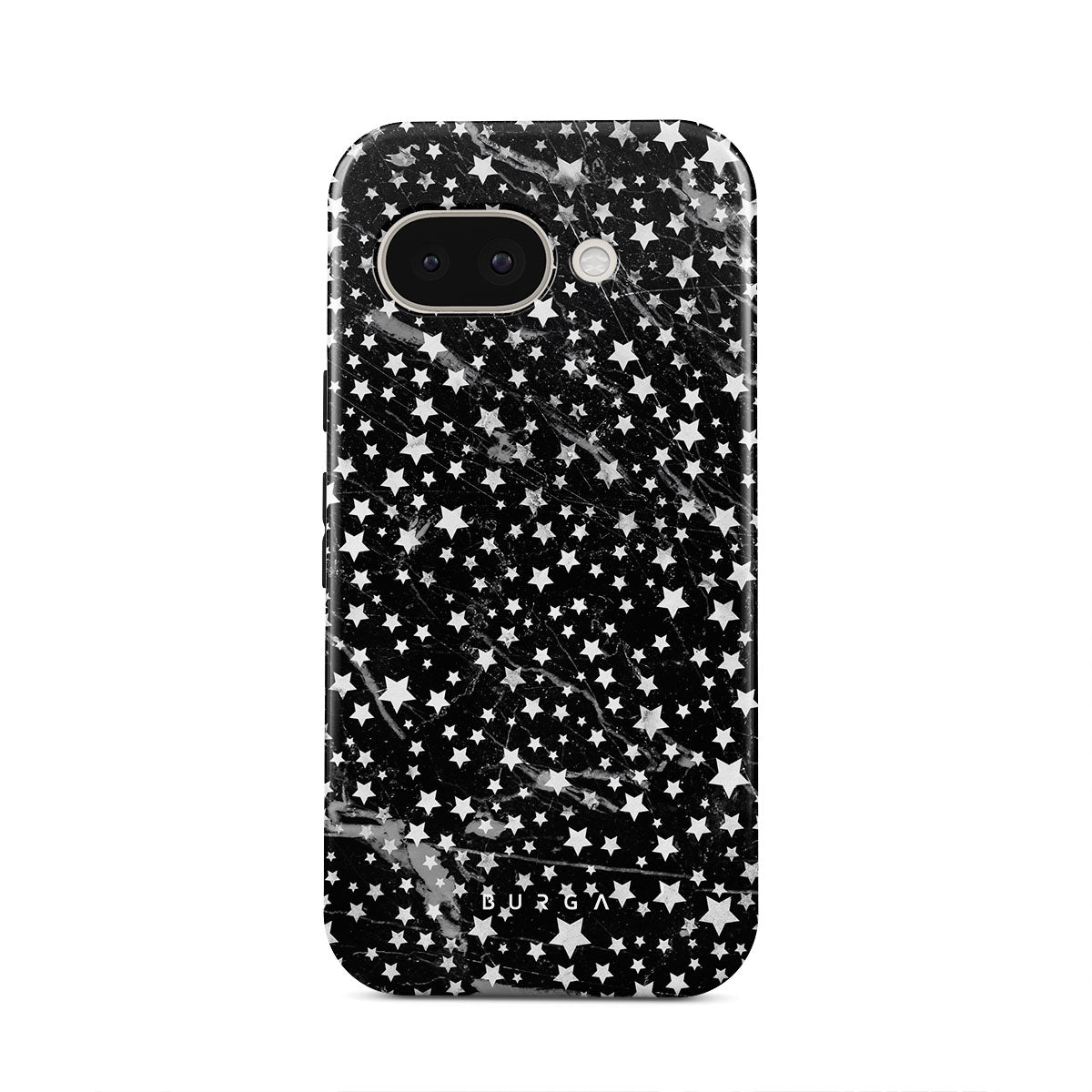 Google Pixel 9a phone case is inspired by the sky above us. Here the charming star pattern meets with a trendy black and white marble. Add the unique combination to your wardrobe and transform your protective phone case into a fashion accessory.