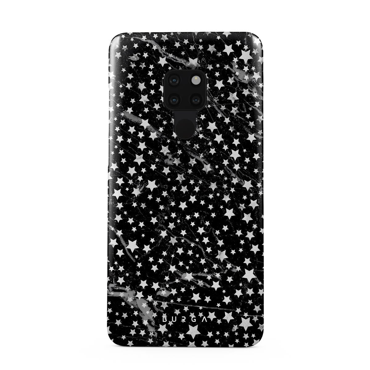 Huawei Mate 20 phone case is inspired by the sky above us. Here the charming star pattern meets with a trendy black and white marble. Add the unique combination to your wardrobe and transform your protective phone case into a fashion accessory.