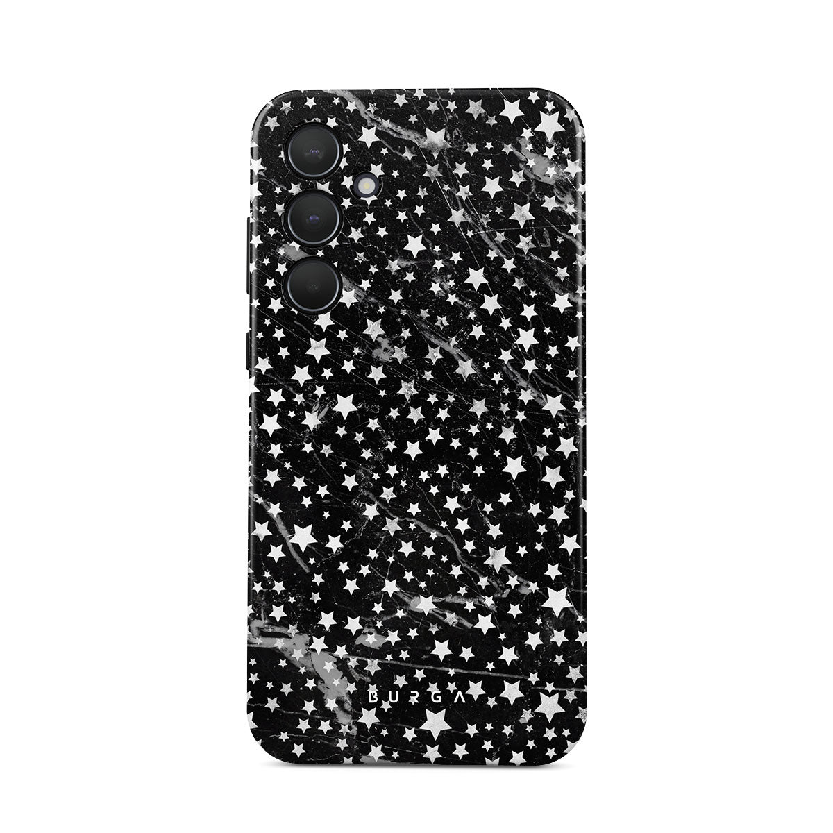 Samsung Galaxy A51 phone case is inspired by the sky above us. Here the charming star pattern meets with a trendy black and white marble. Add the unique combination to your wardrobe and transform your protective phone case into a fashion accessory.