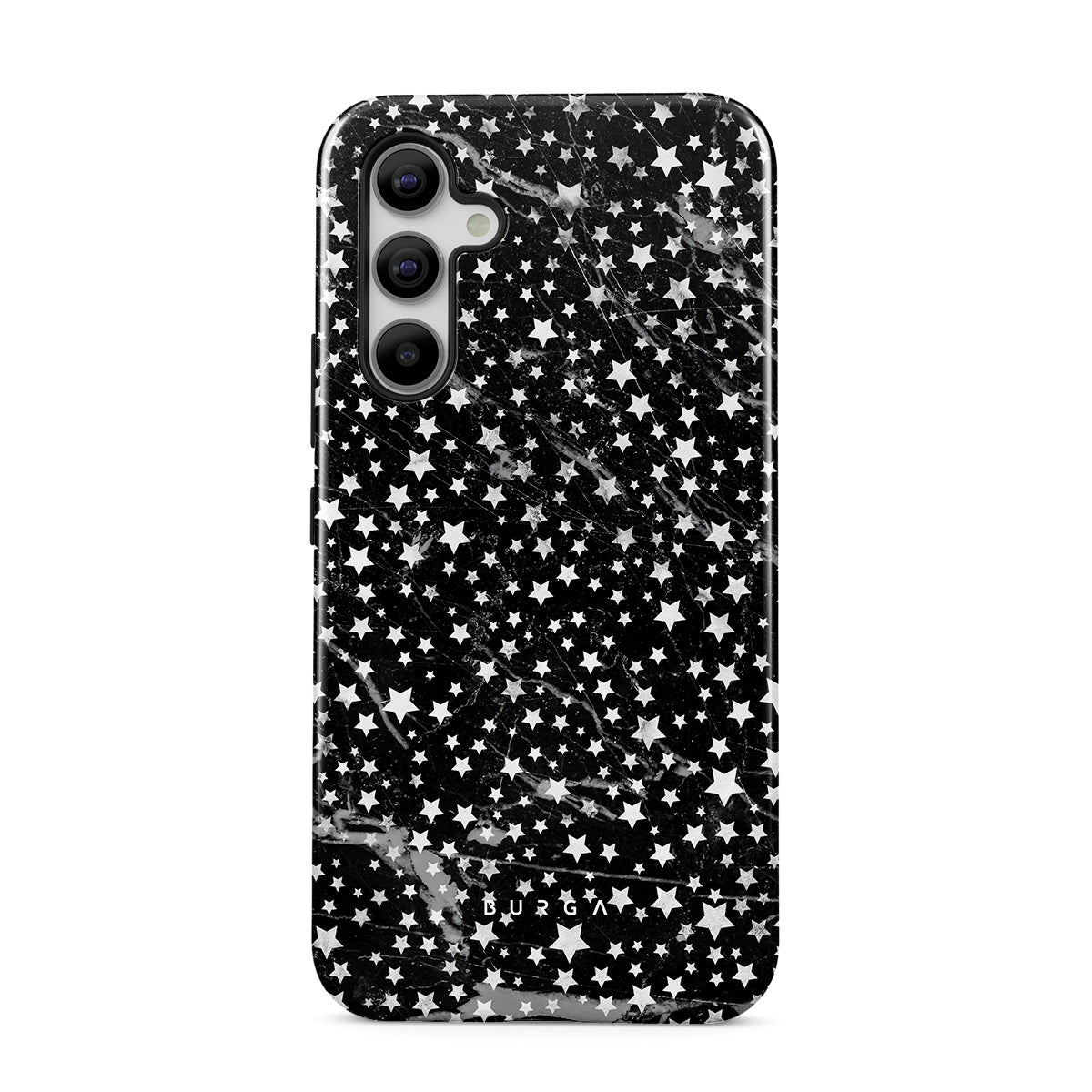Samsung Galaxy A51 phone case is inspired by the sky above us. Here the charming star pattern meets with a trendy black and white marble. Add the unique combination to your wardrobe and transform your protective phone case into a fashion accessory.