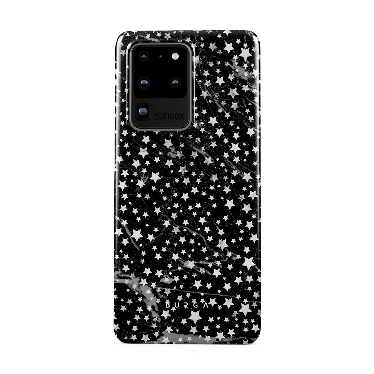 Samsung Galaxy S20 Ultra 4G / 5G phone case is inspired by the sky above us. Here the charming star pattern meets with a trendy black and white marble. Add the unique combination to your wardrobe and transform your protective phone case into a fashion accessory.