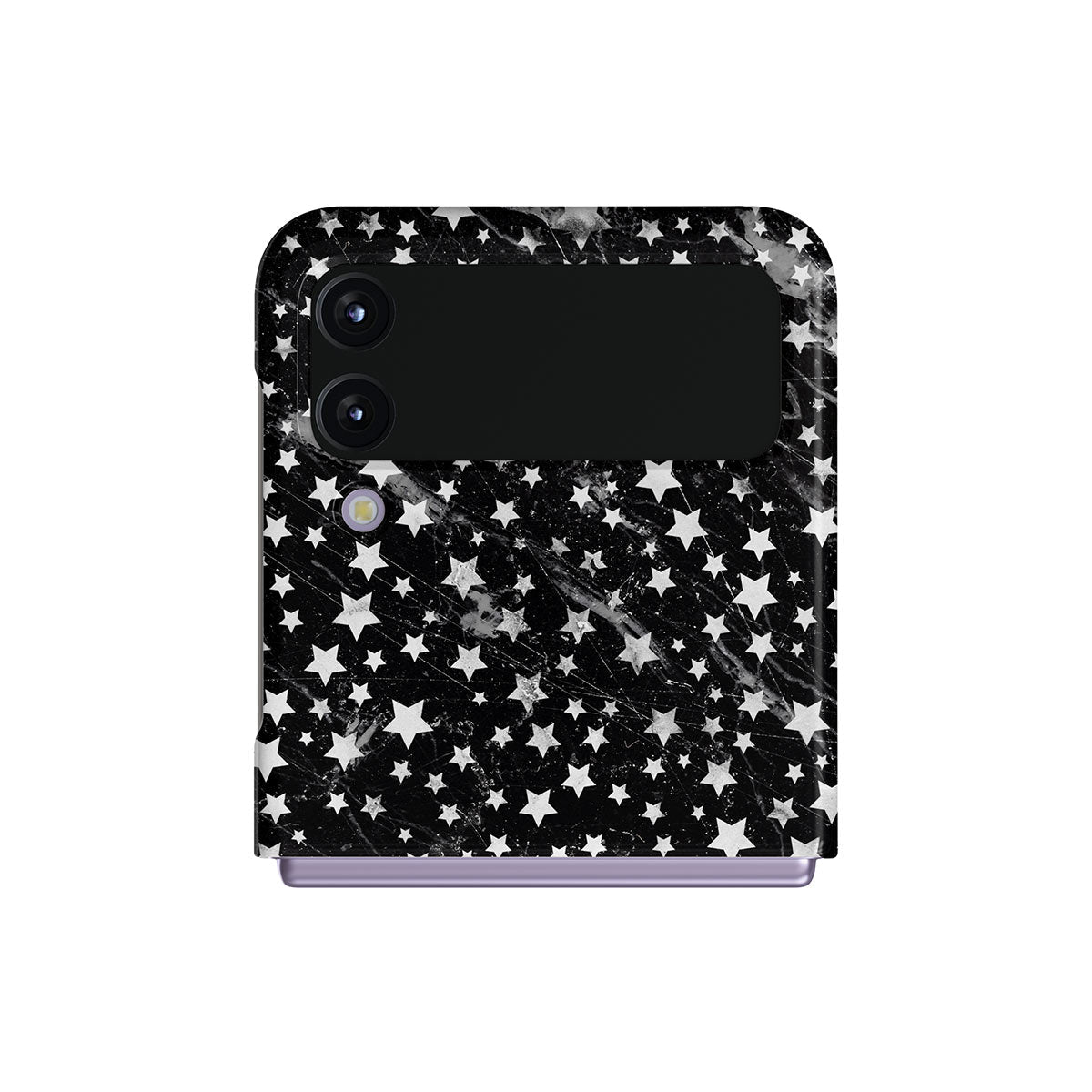 Samsung Galaxy Z Flip 4 phone case is inspired by the sky above us. Here the charming star pattern meets with a trendy black and white marble. Add the unique combination to your wardrobe and transform your protective phone case into a fashion accessory.