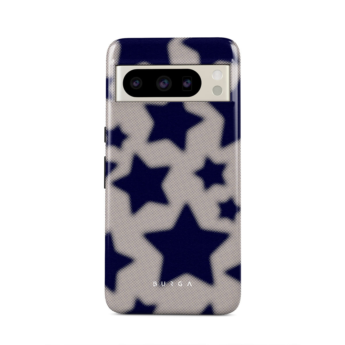 Rock a touch of '90s nostalgia with the Starstruck Google Pixel 8 Pro phone case design. Its nude background is scattered with bold blue stars; each star hints at stories of hope and youthful dreams, blending simplicity with depth.