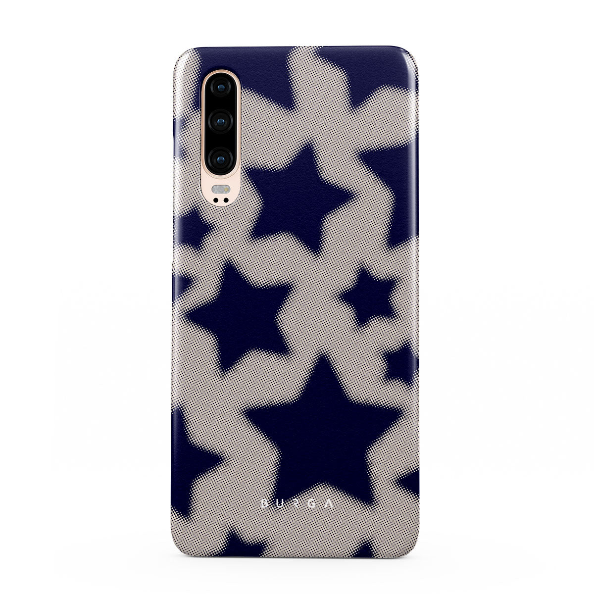 Rock a touch of '90s nostalgia with the Starstruck Huawei P30 phone case design. Its nude background is scattered with bold blue stars; each star hints at stories of hope and youthful dreams, blending simplicity with depth.