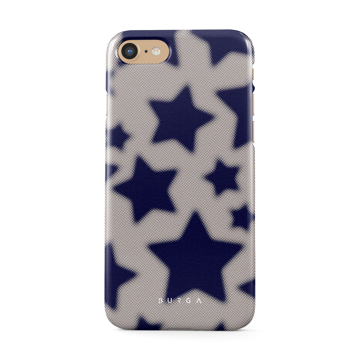 Rock a touch of '90s nostalgia with the Starstruck iPhone SE (2020) phone case design. Its nude background is scattered with bold blue stars; each star hints at stories of hope and youthful dreams, blending simplicity with depth.