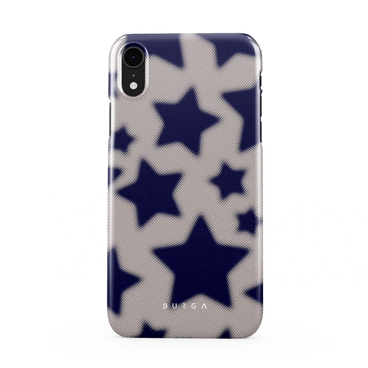 Rock a touch of '90s nostalgia with the Starstruck iPhone XR phone case design. Its nude background is scattered with bold blue stars; each star hints at stories of hope and youthful dreams, blending simplicity with depth.