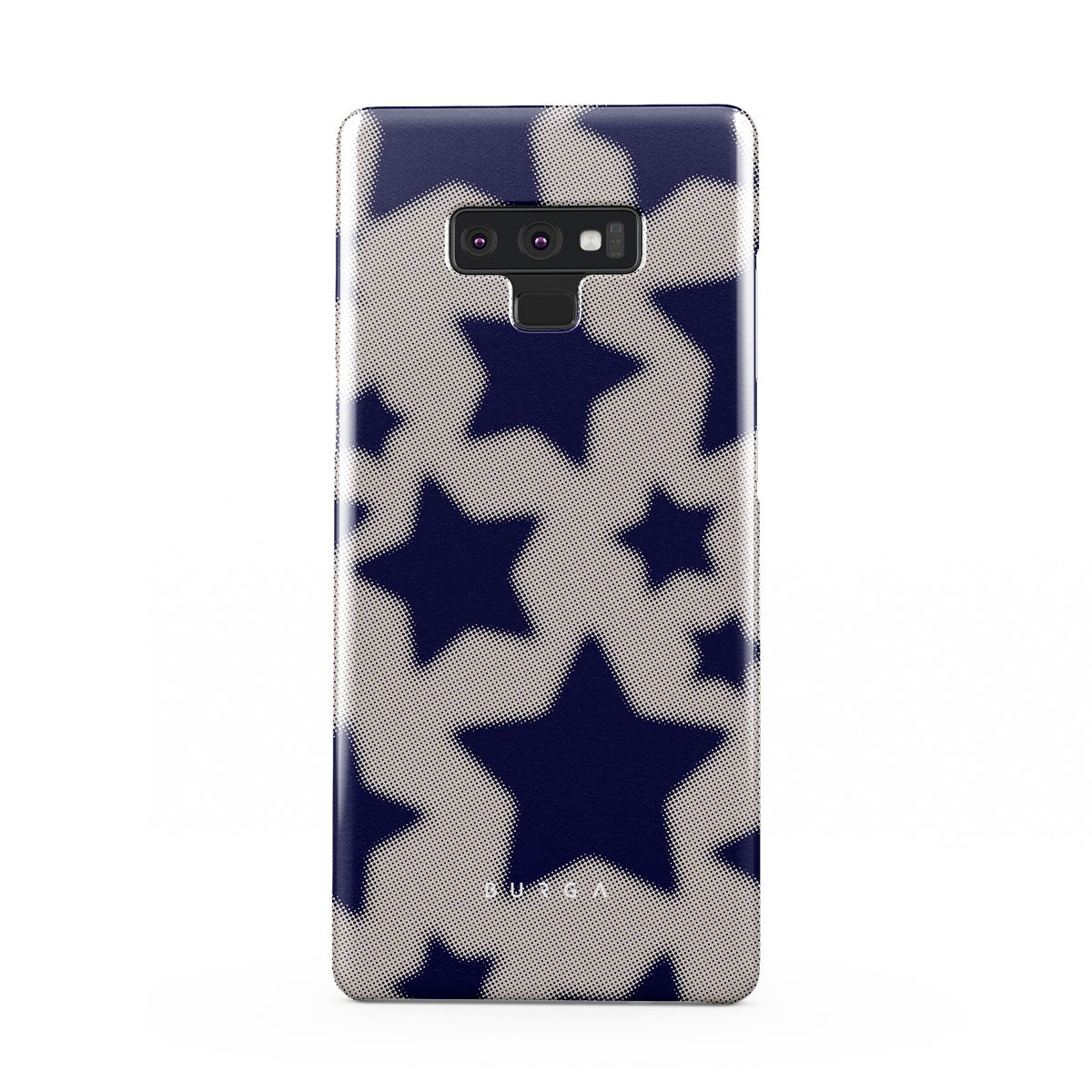 Rock a touch of '90s nostalgia with the Starstruck Samsung Galaxy Note 9 phone case design. Its nude background is scattered with bold blue stars; each star hints at stories of hope and youthful dreams, blending simplicity with depth.