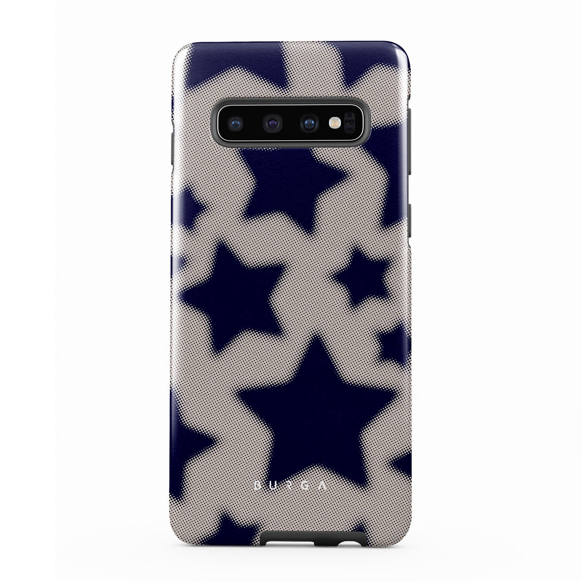Rock a touch of '90s nostalgia with the Starstruck Samsung Galaxy S10 4G phone case design. Its nude background is scattered with bold blue stars; each star hints at stories of hope and youthful dreams, blending simplicity with depth.