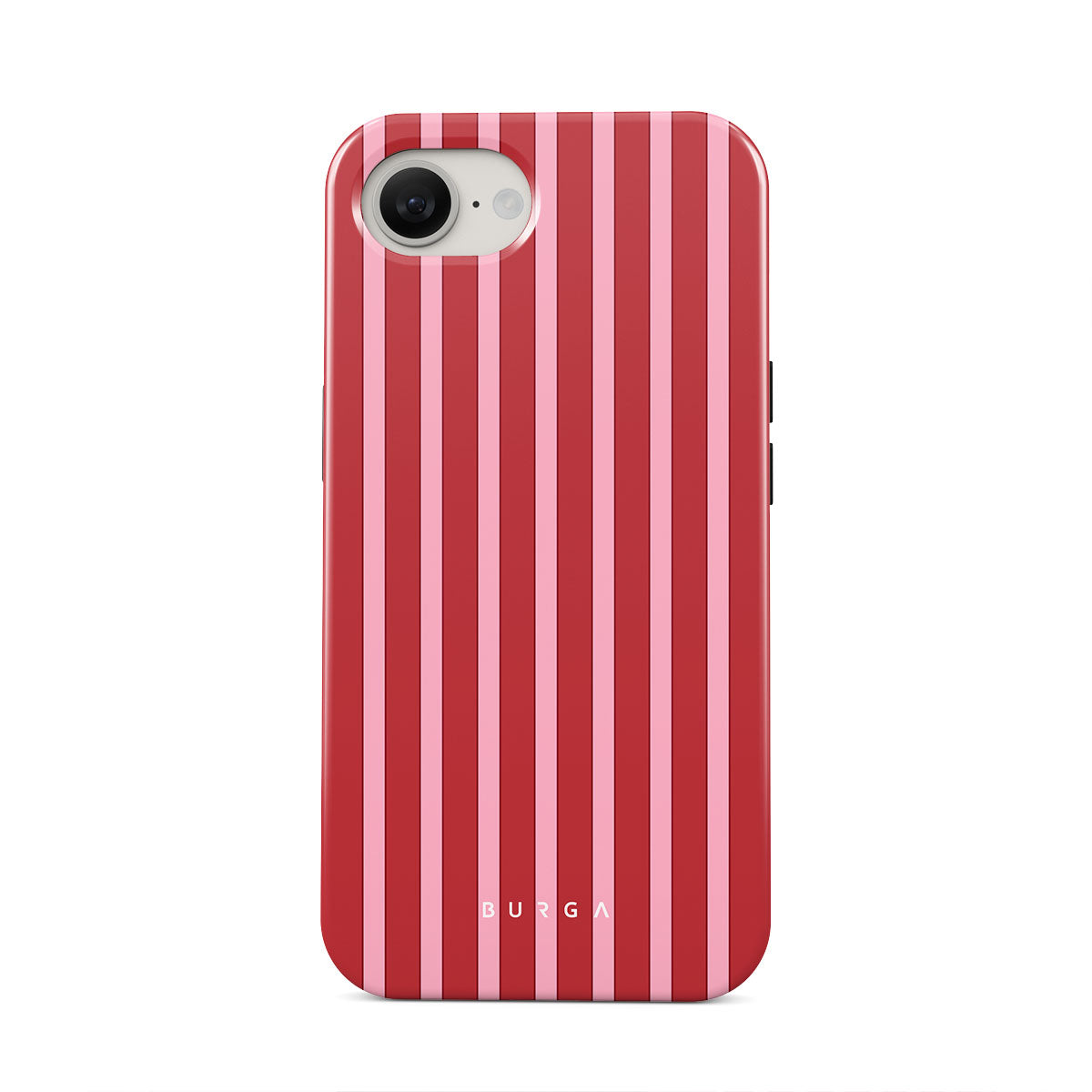 Stripes of red, like strawberry swirls on toast, this iPhone 16e phone case design brings the sweet memory of breakfasts that start with a spread of homemade love.