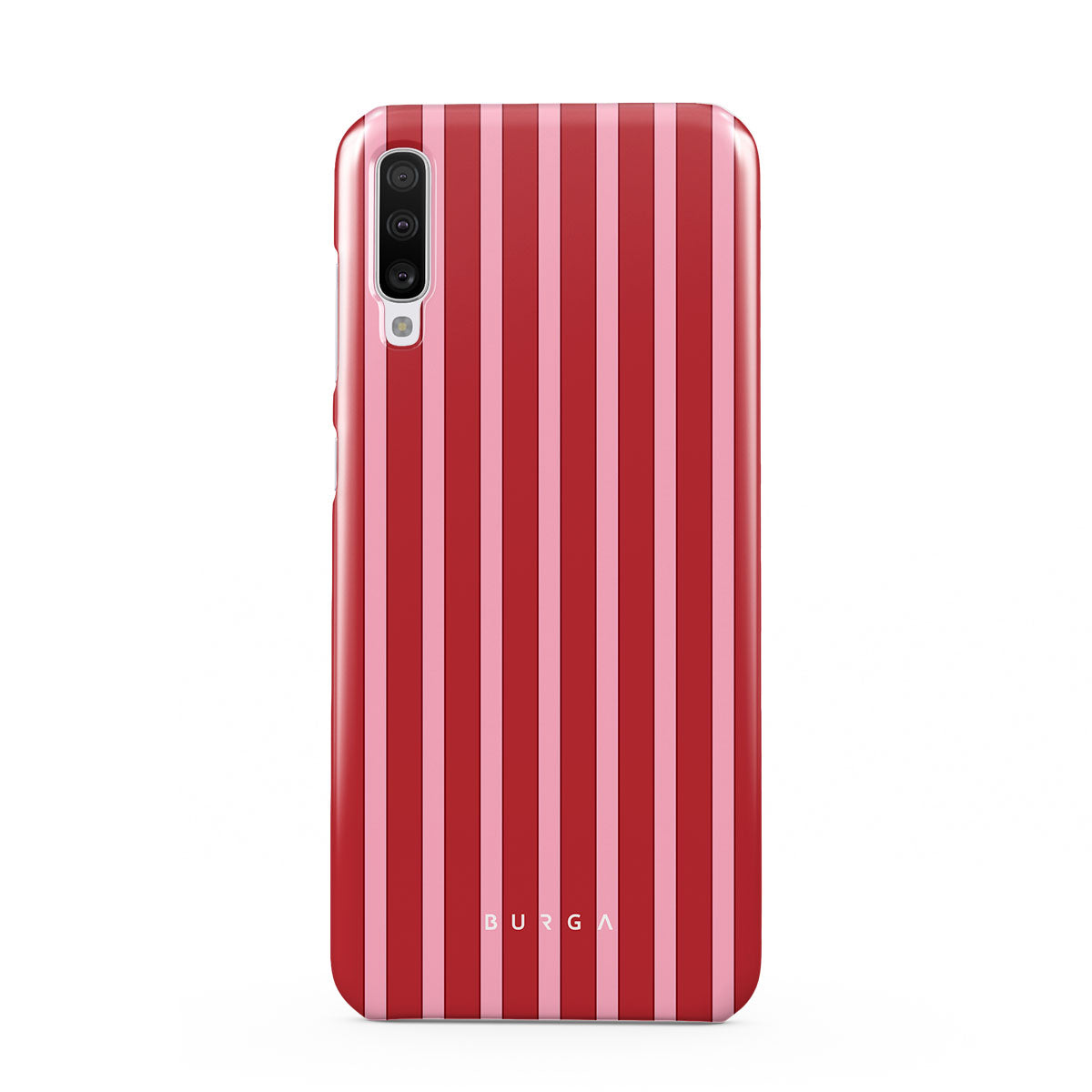 Stripes of red, like strawberry swirls on toast, this Samsung Galaxy A70 phone case design brings the sweet memory of breakfasts that start with a spread of homemade love.