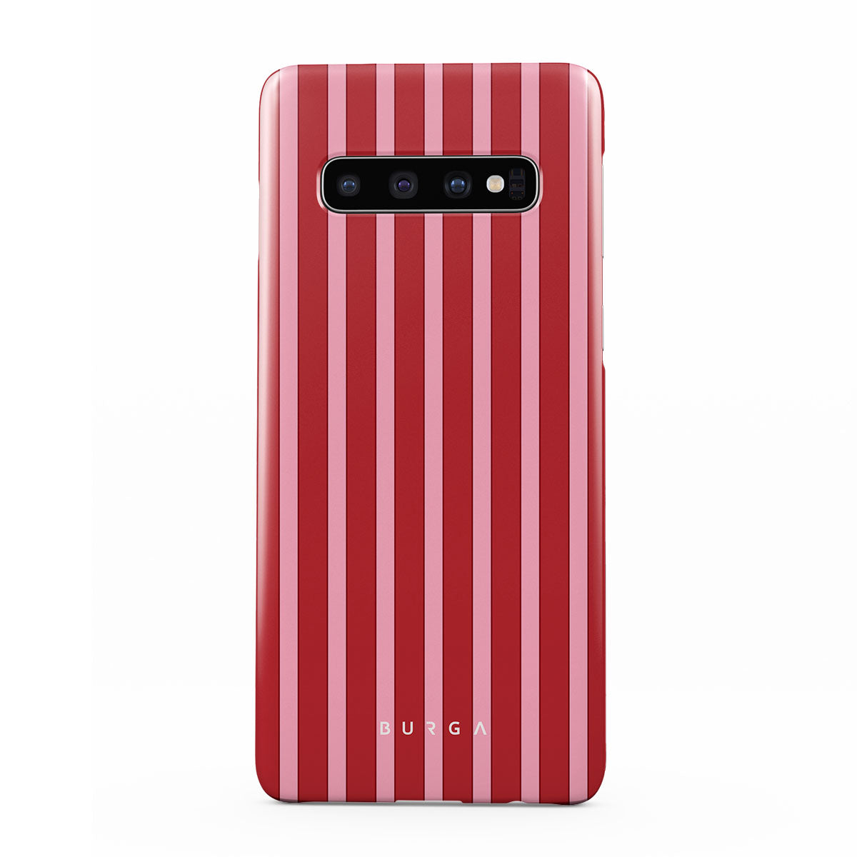 Stripes of red, like strawberry swirls on toast, this Samsung Galaxy S10 Plus phone case design brings the sweet memory of breakfasts that start with a spread of homemade love.