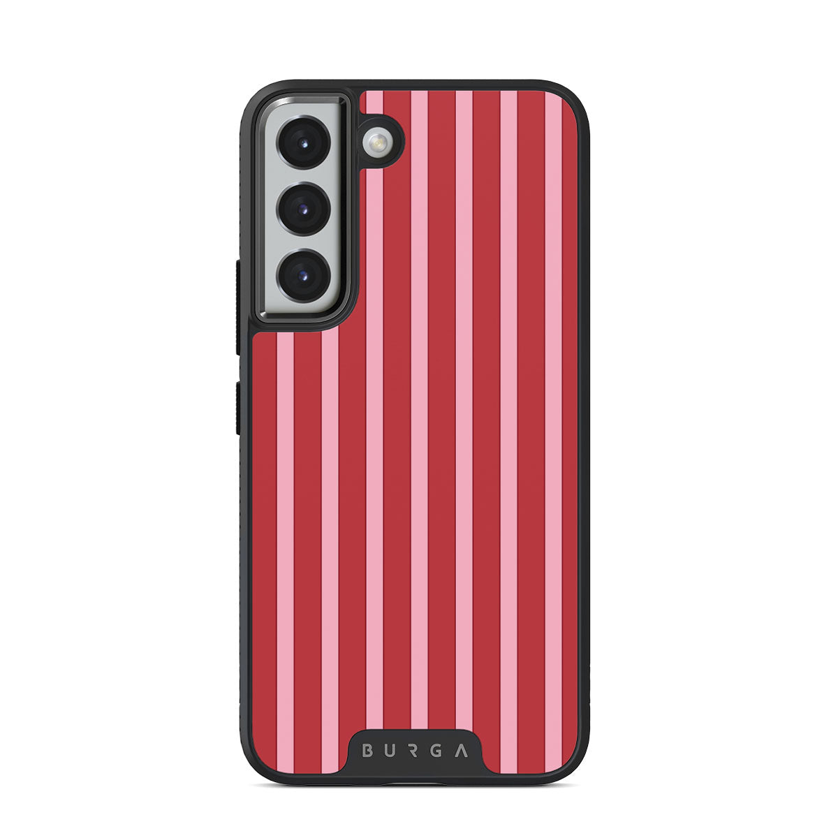 Stripes of red, like strawberry swirls on toast, this Samsung Galaxy S22 phone case design brings the sweet memory of breakfasts that start with a spread of homemade love.