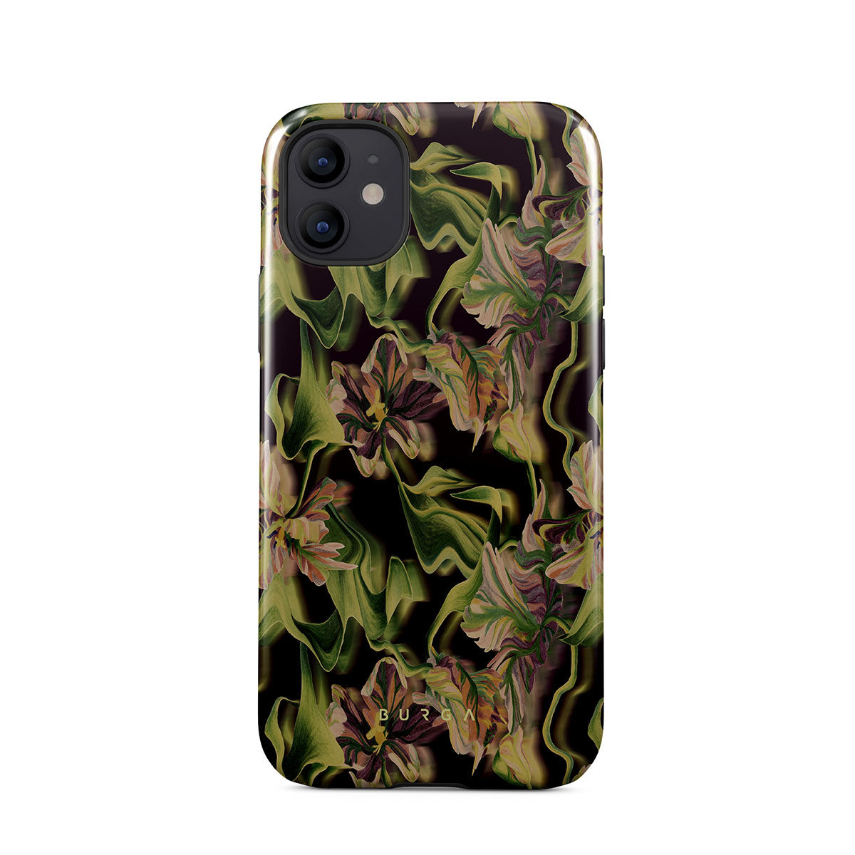 Let's wander into the world of humidity, fog, and deep green color. Our Subtropical iPhone 12 phone case will add that exotic touch to your life. The flower pattern is as clear as it seems to be melting away. The purple and orange shades in the flowers will add that subtle splash of color to your style without being too provocative.