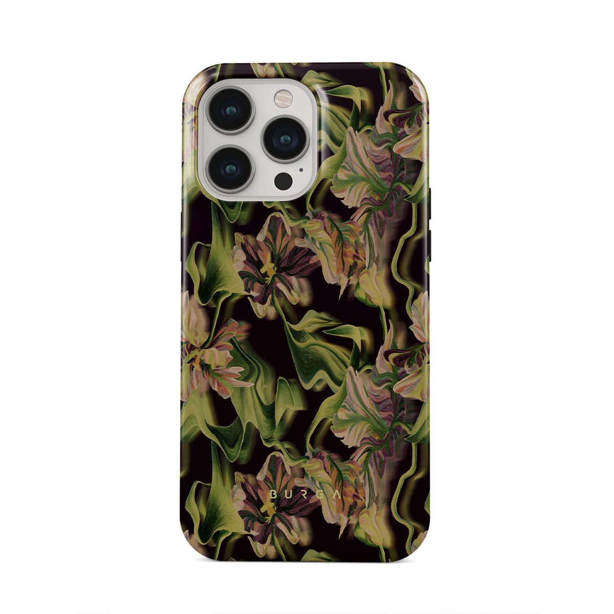 Let's wander into the world of humidity, fog, and deep green color. Our Subtropical iPhone 13 Pro phone case will add that exotic touch to your life. The flower pattern is as clear as it seems to be melting away. The purple and orange shades in the flowers will add that subtle splash of color to your style without being too provocative.