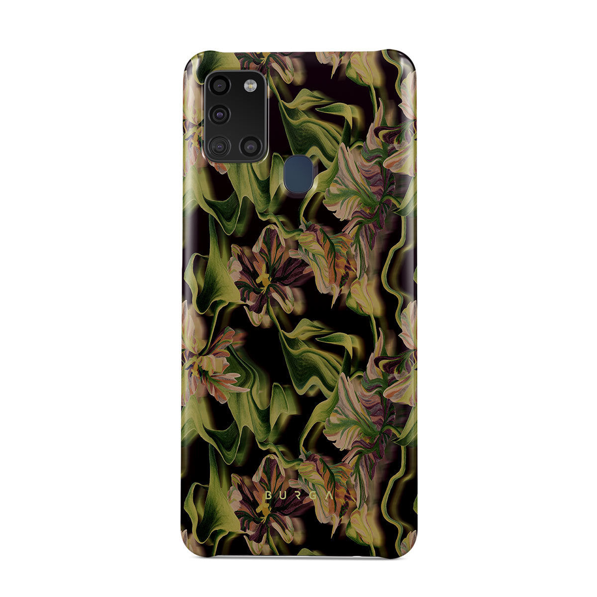 Let's wander into the world of humidity, fog, and deep green color. Our Subtropical Samsung Galaxy A21s 4G phone case will add that exotic touch to your life. The flower pattern is as clear as it seems to be melting away. The purple and orange shades in the flowers will add that subtle splash of color to your style without being too provocative.