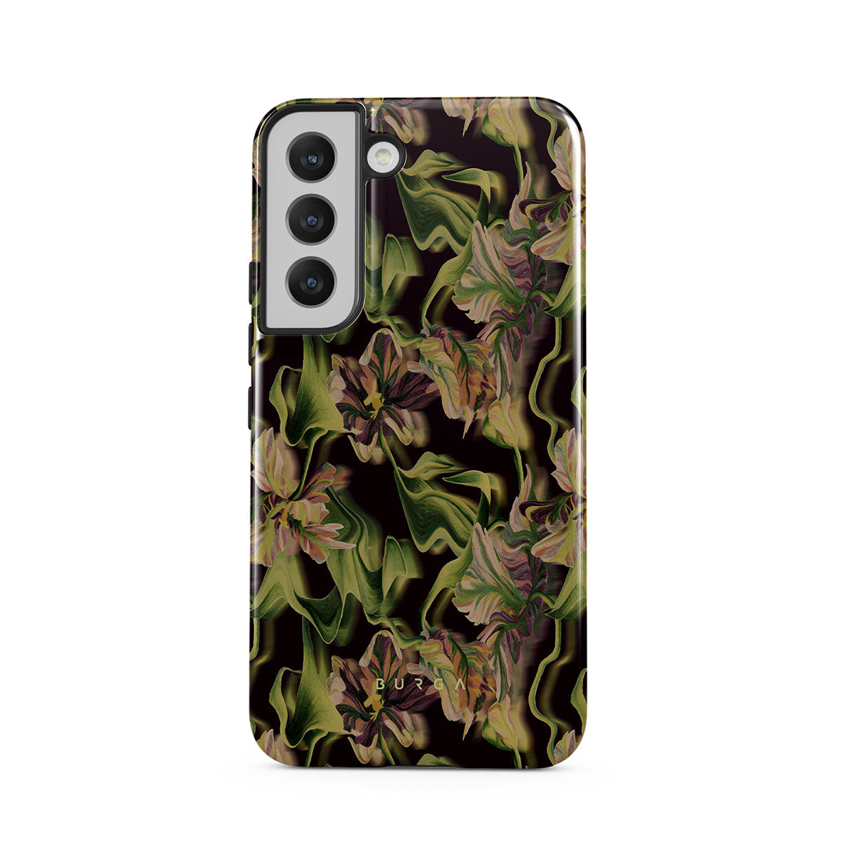 Let's wander into the world of humidity, fog, and deep green color. Our Subtropical Samsung Galaxy S22 Plus phone case will add that exotic touch to your life. The flower pattern is as clear as it seems to be melting away. The purple and orange shades in the flowers will add that subtle splash of color to your style without being too provocative.