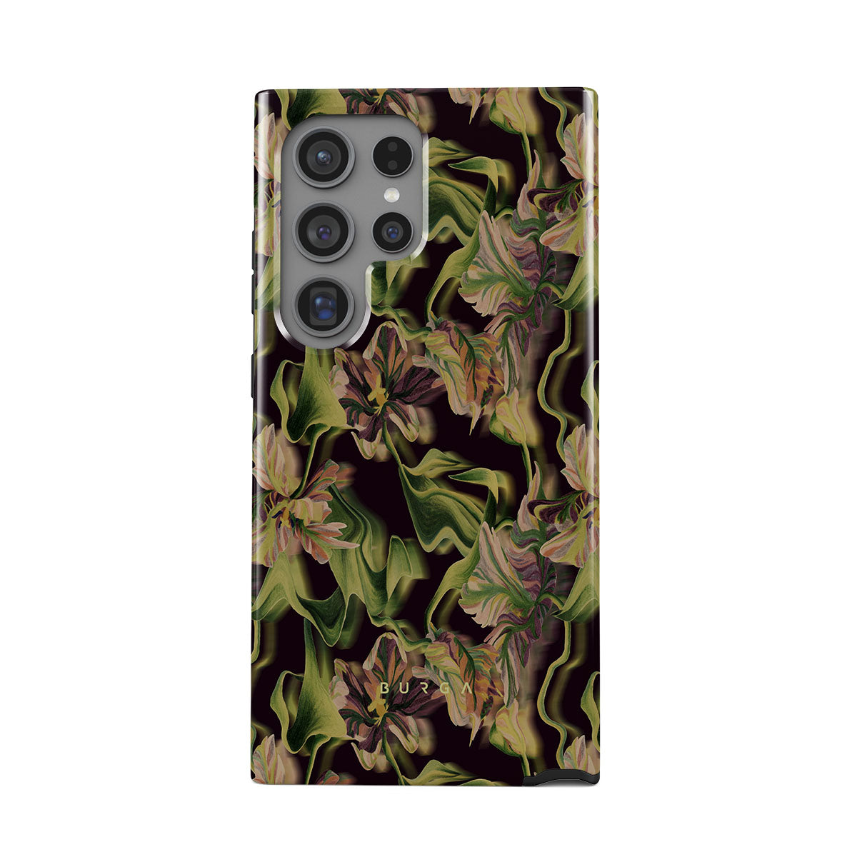 Let's wander into the world of humidity, fog, and deep green color. Our Subtropical Samsung Galaxy S24 Ultra phone case will add that exotic touch to your life. The flower pattern is as clear as it seems to be melting away. The purple and orange shades in the flowers will add that subtle splash of color to your style without being too provocative.