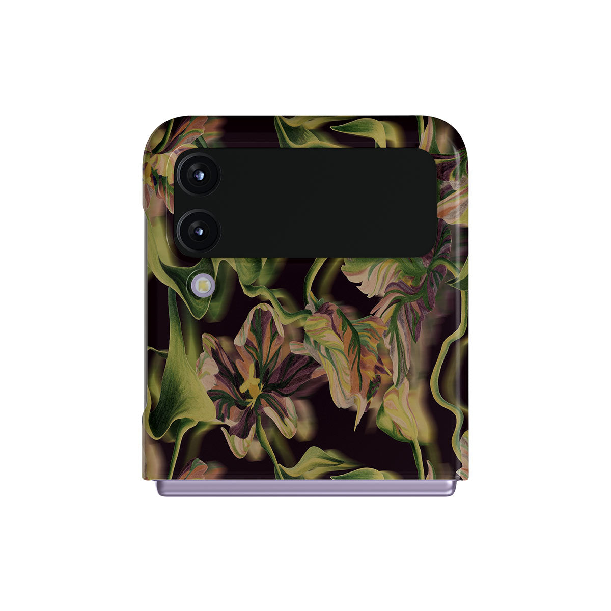 Let's wander into the world of humidity, fog, and deep green color. Our Subtropical Samsung Galaxy Z Flip 4 phone case will add that exotic touch to your life. The flower pattern is as clear as it seems to be melting away. The purple and orange shades in the flowers will add that subtle splash of color to your style without being too provocative.
