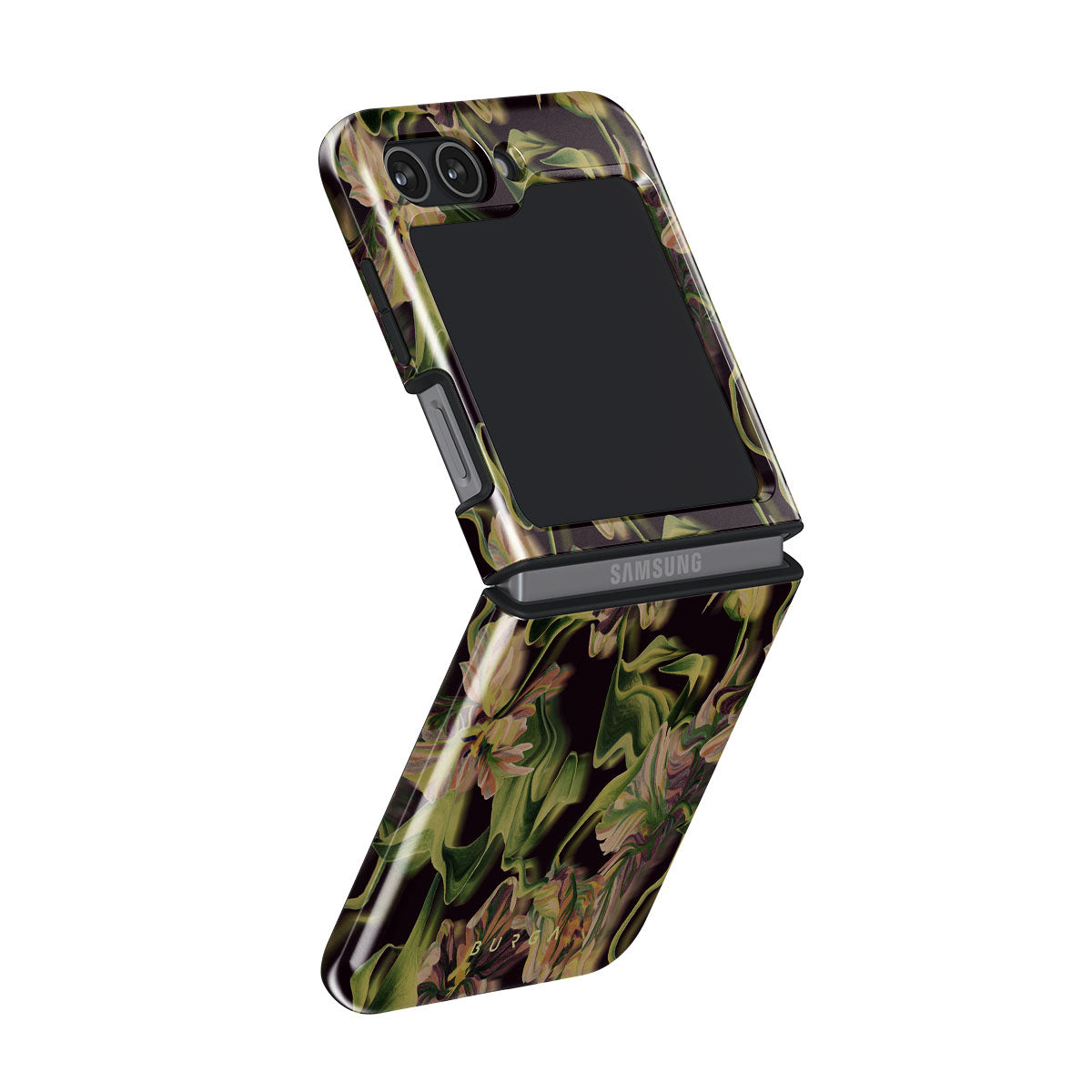 Let's wander into the world of humidity, fog, and deep green color. Our Subtropical Samsung Galaxy Z Flip 5 phone case will add that exotic touch to your life. The flower pattern is as clear as it seems to be melting away. The purple and orange shades in the flowers will add that subtle splash of color to your style without being too provocative.