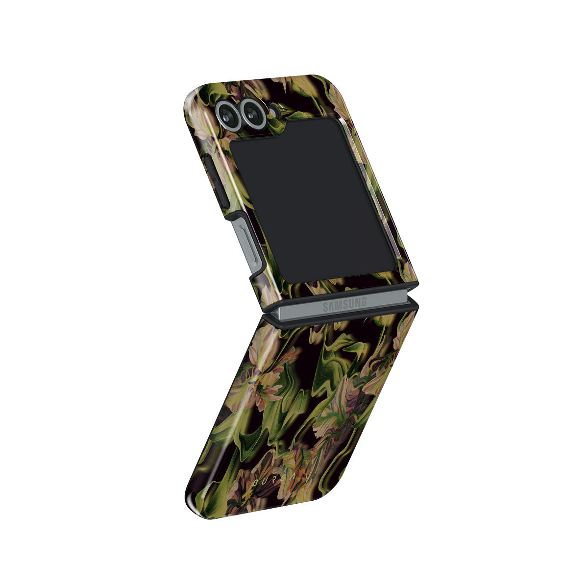 Let's wander into the world of humidity, fog, and deep green color. Our Subtropical Samsung Galaxy Z Flip 6 phone case will add that exotic touch to your life. The flower pattern is as clear as it seems to be melting away. The purple and orange shades in the flowers will add that subtle splash of color to your style without being too provocative.