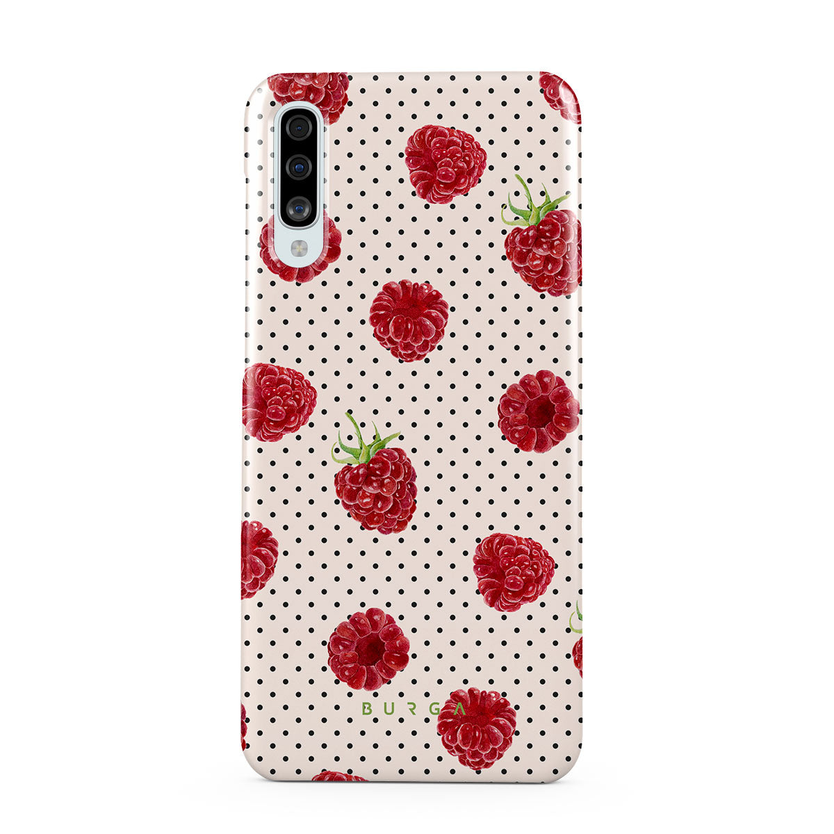This Samsung Galaxy A50 phone case design spills strawberries like secrets, the ones that taste of long days in the sun and remind you that some summers never end.