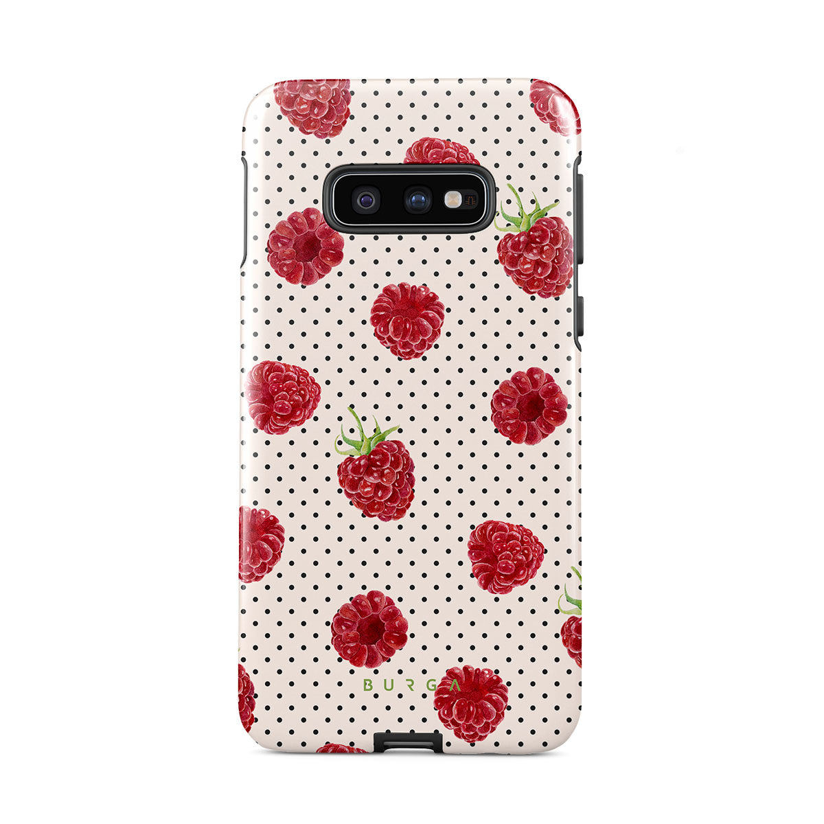 This Samsung Galaxy S10E phone case design spills strawberries like secrets, the ones that taste of long days in the sun and remind you that some summers never end.