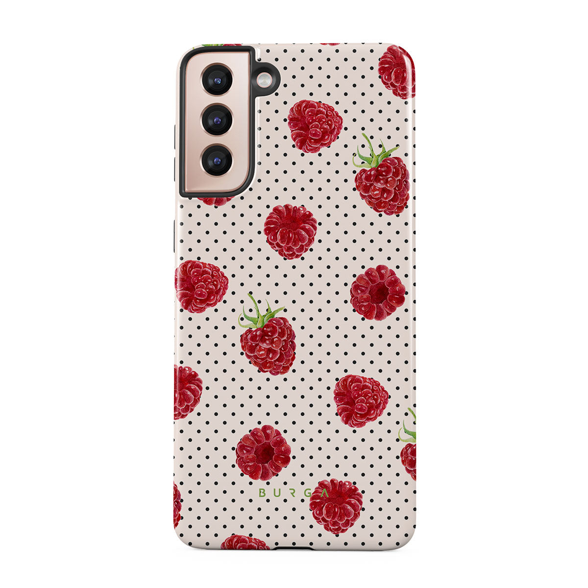 This Samsung Galaxy S21 Plus phone case design spills strawberries like secrets, the ones that taste of long days in the sun and remind you that some summers never end.