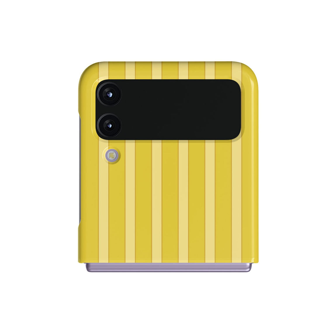 Bask in the glow of Sunbreak. This Samsung Galaxy Z Flip 4 phone case design features bold yellow stripes, reminiscent of beachside cabanas and sunny summer days. It’s a chic celebration of joy and simplicity.