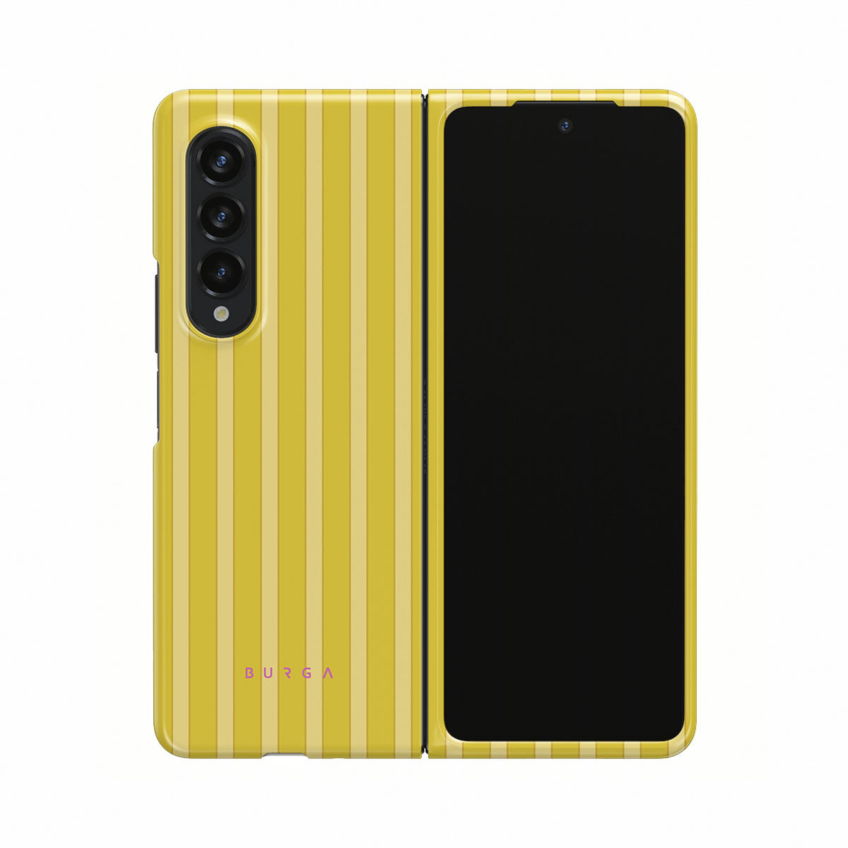 Bask in the glow of Sunbreak. This Samsung Galaxy Z Fold 3 phone case design features bold yellow stripes, reminiscent of beachside cabanas and sunny summer days. It’s a chic celebration of joy and simplicity.