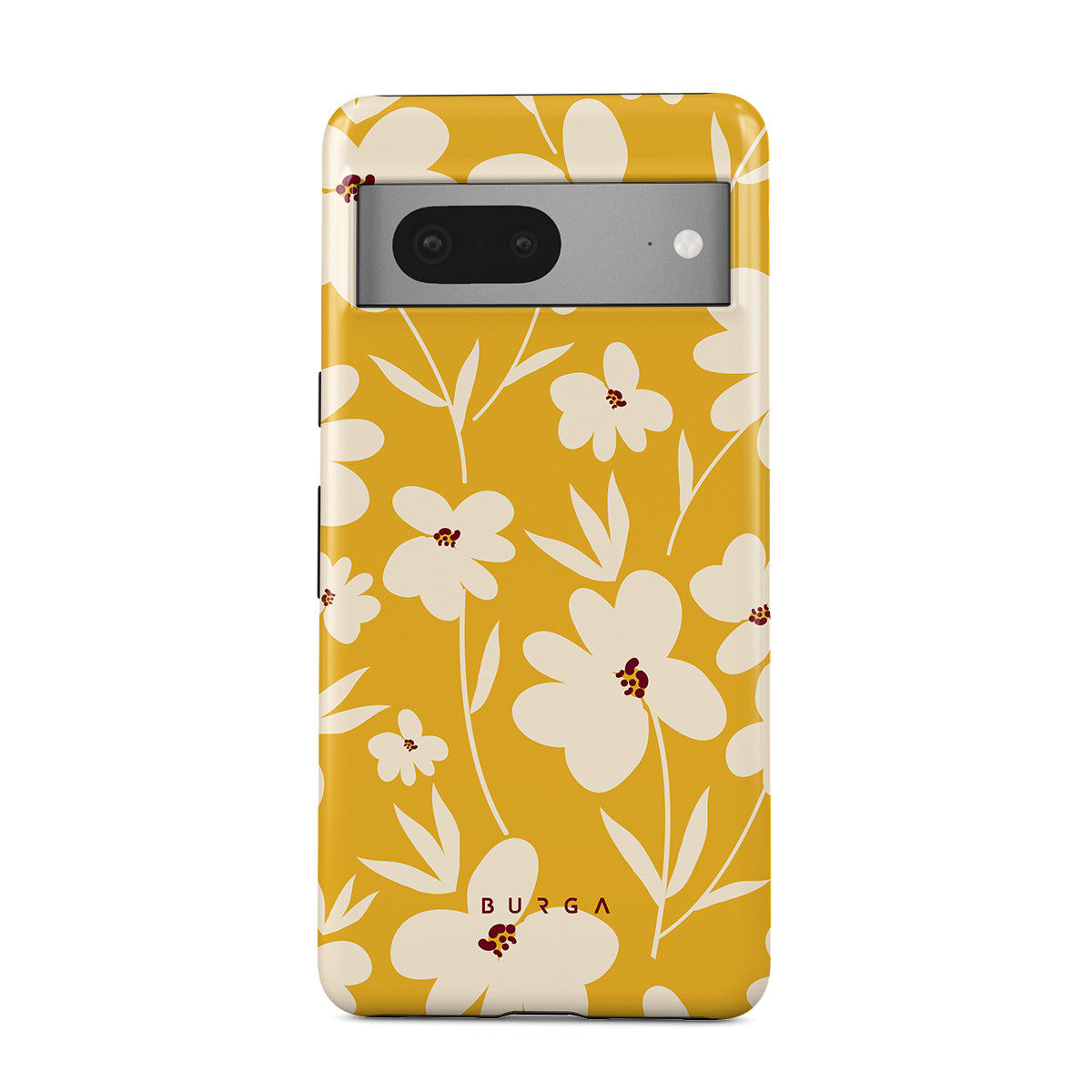 Full of fresh produce, warm rays of sunshine, and relaxing moments, our Sunday Market Google Pixel 7 phone case encase all of this! The vintage mustard-yellow background with beautiful creme flowers will add that soft floral touch to your wardrobe while protecting your device from unexpected falls!
