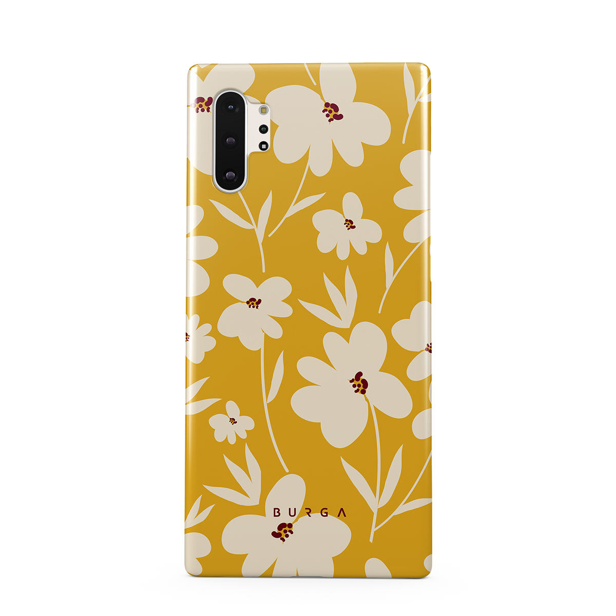 Full of fresh produce, warm rays of sunshine, and relaxing moments, our Sunday Market Samsung Galaxy Note 10 Plus phone case encase all of this! The vintage mustard-yellow background with beautiful creme flowers will add that soft floral touch to your wardrobe while protecting your device from unexpected falls!