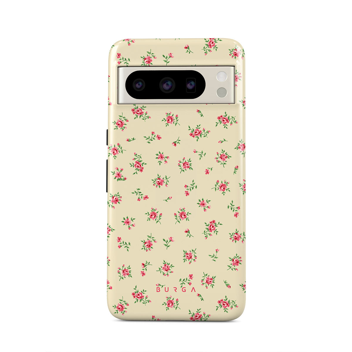 A daydream of soft pink petals on creamy yellow, reminiscent of that perfect light dress, twirling in the golden light of a lazy afternoon—that’s the Sundress Google Pixel 8 Pro phone case design.