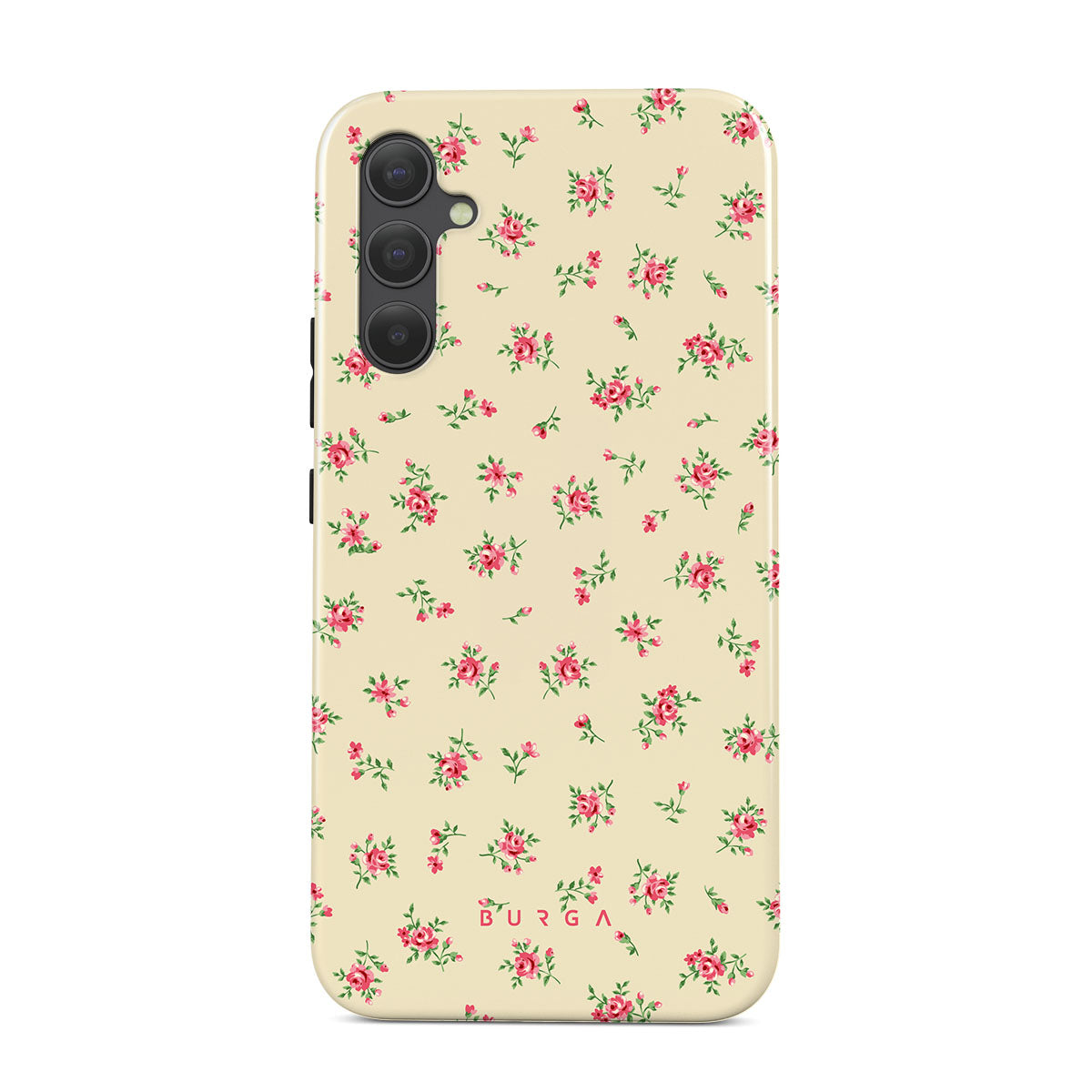 A daydream of soft pink petals on creamy yellow, reminiscent of that perfect light dress, twirling in the golden light of a lazy afternoon—that’s the Sundress Samsung Galaxy A34 phone case design.