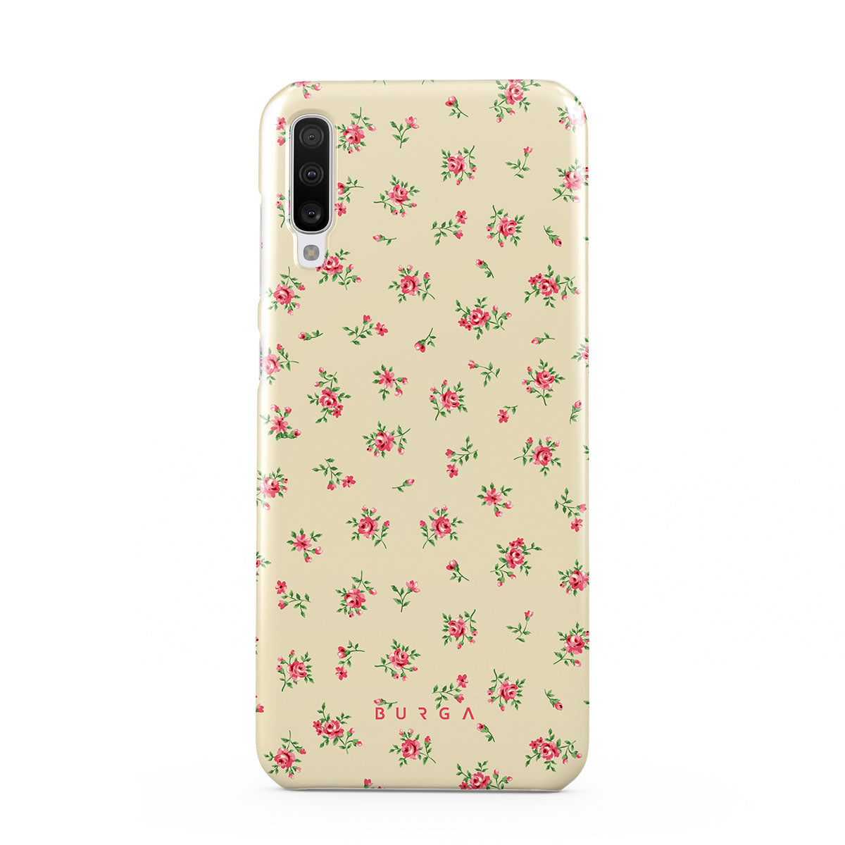 A daydream of soft pink petals on creamy yellow, reminiscent of that perfect light dress, twirling in the golden light of a lazy afternoon—that’s the Sundress Samsung Galaxy A70 phone case design.