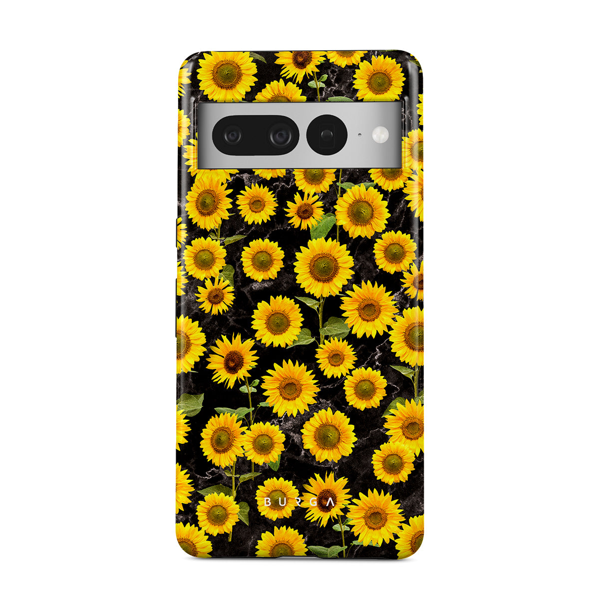 With our Sunflower Glimmer Google Pixel 7 Pro phone case, you can have a bit of sunshine in your pocket. Let the flower pattern bring inspiration and warmth to your everyday life, and also, do not forget the ultimate plus: heavy-duty protection that our case offers for your phone!