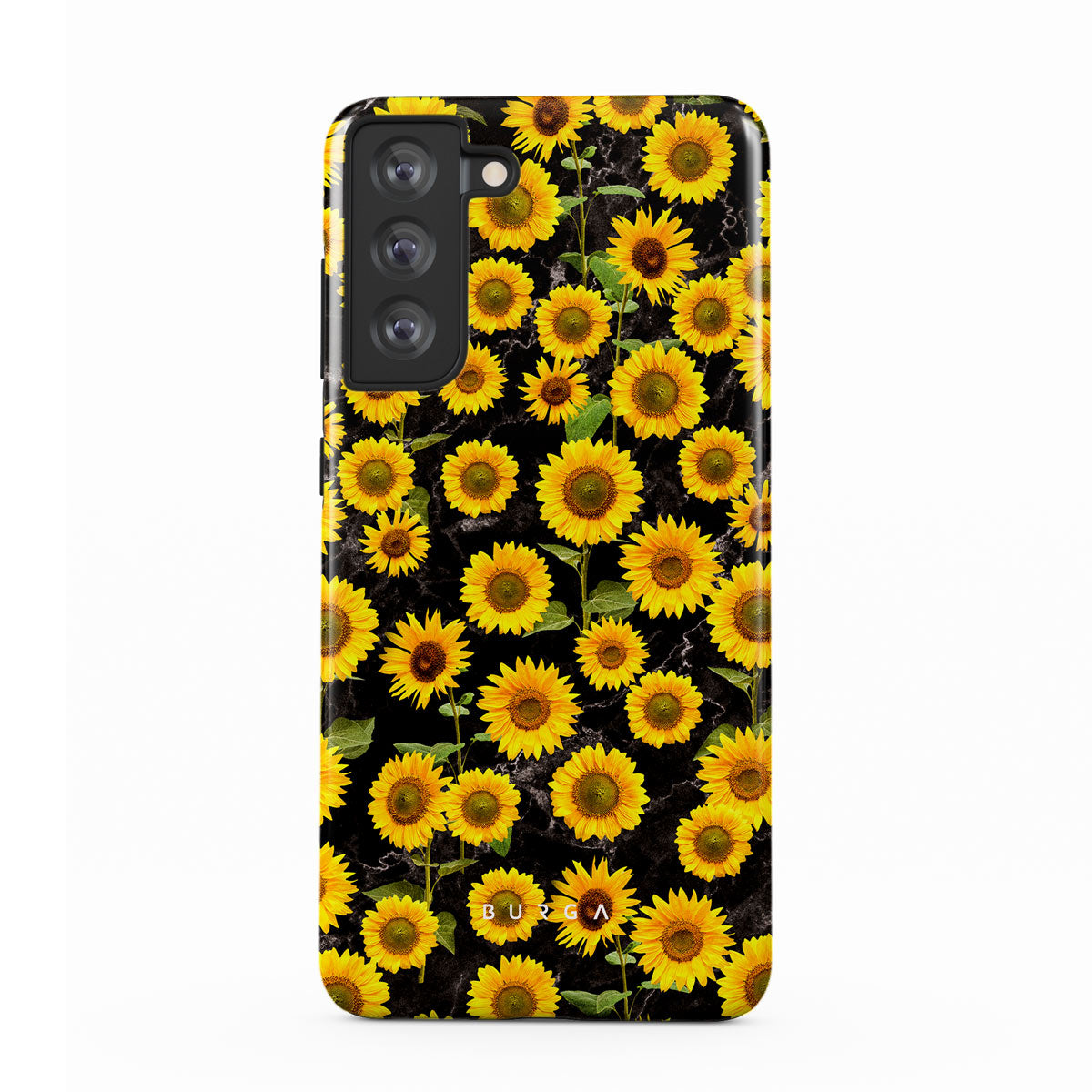 With our Sunflower Glimmer Samsung Galaxy S21 FE phone case, you can have a bit of sunshine in your pocket. Let the flower pattern bring inspiration and warmth to your everyday life, and also, do not forget the ultimate plus: heavy-duty protection that our case offers for your phone!