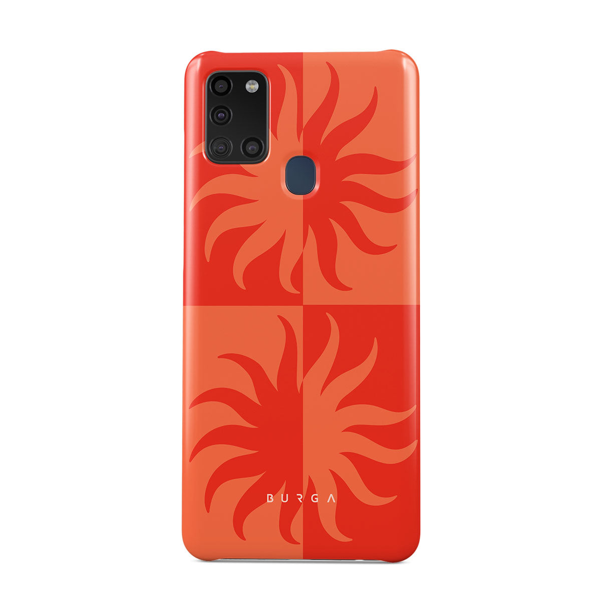 Feel the warmth with this fiery orange Samsung Galaxy A21s 4G phone case design adorned with bold, radiant hues. Sunkissed captures the vibrant energy of sun-drenched days and the intense beauty of a tropical paradise. Perfect for those who love to stand out.