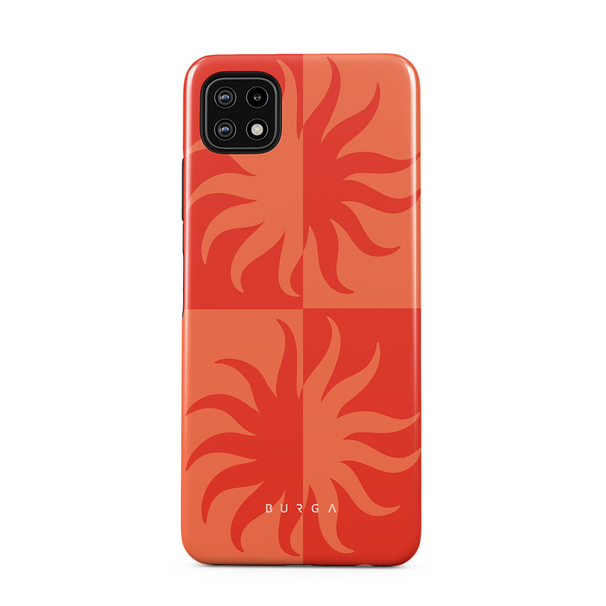 Feel the warmth with this fiery orange Samsung Galaxy A22 5G phone case design adorned with bold, radiant hues. Sunkissed captures the vibrant energy of sun-drenched days and the intense beauty of a tropical paradise. Perfect for those who love to stand out.