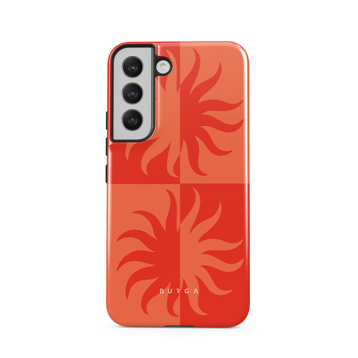 Feel the warmth with this fiery orange Samsung Galaxy S22 Plus phone case design adorned with bold, radiant hues. Sunkissed captures the vibrant energy of sun-drenched days and the intense beauty of a tropical paradise. Perfect for those who love to stand out.